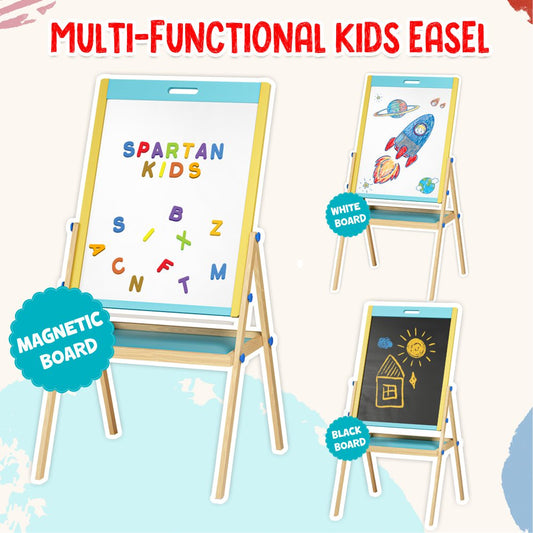 Easel Board for Kids - Adjustable Whiteboard & Chalkboard