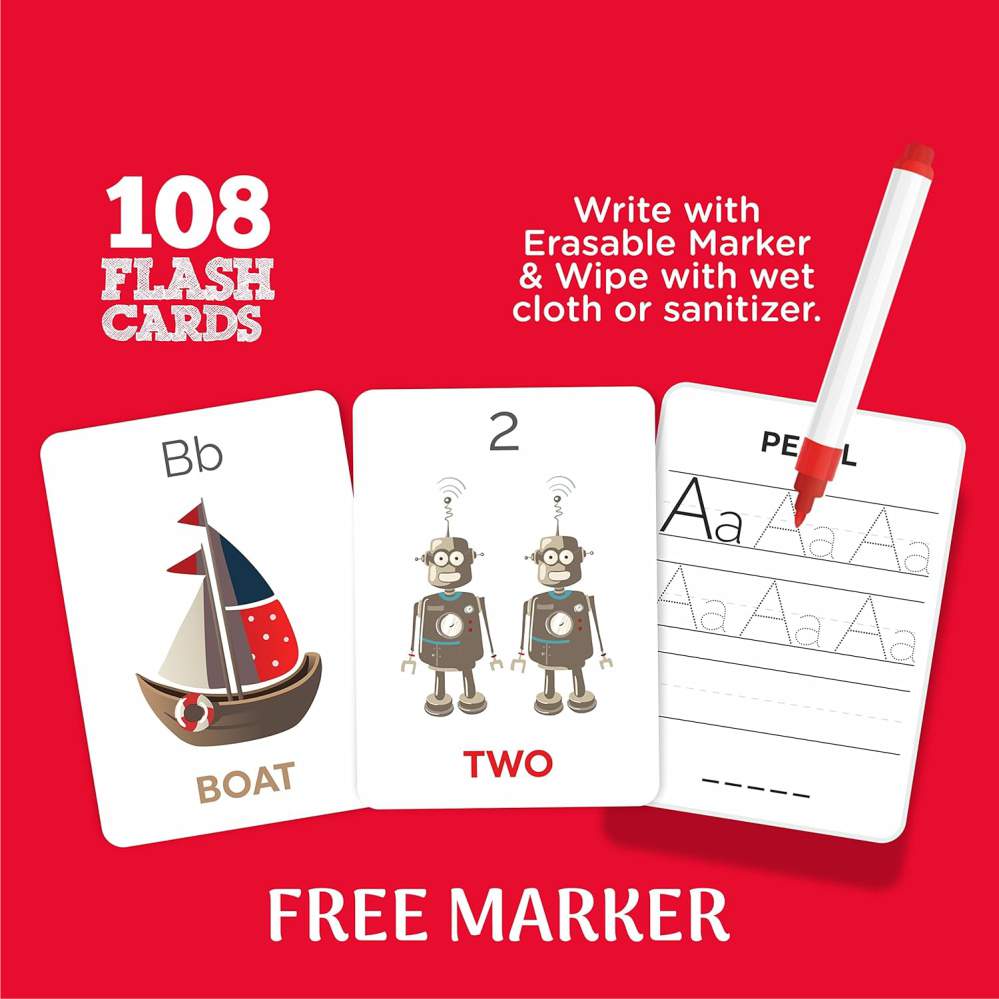 108 wipe-clean flash cards for kids ages 4+