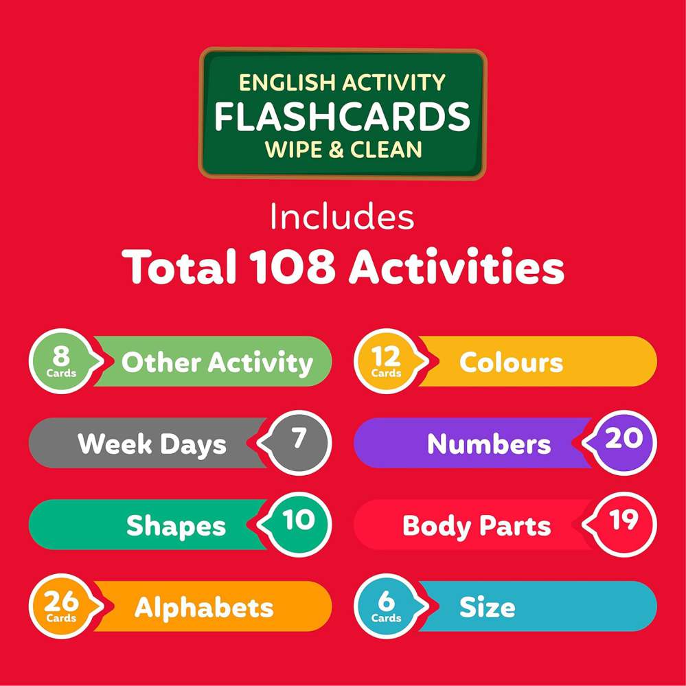 Activity Flash Cards for Kids 4+ with Wipe-Clean Marker (108 Cards)