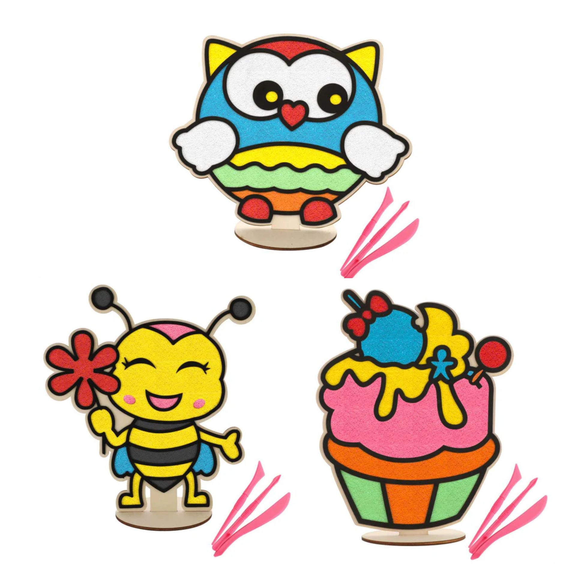 DIY Foam Clay Art Kit: Wooden Owl, Bee, Cupcake Board with Stand (Set of 3)