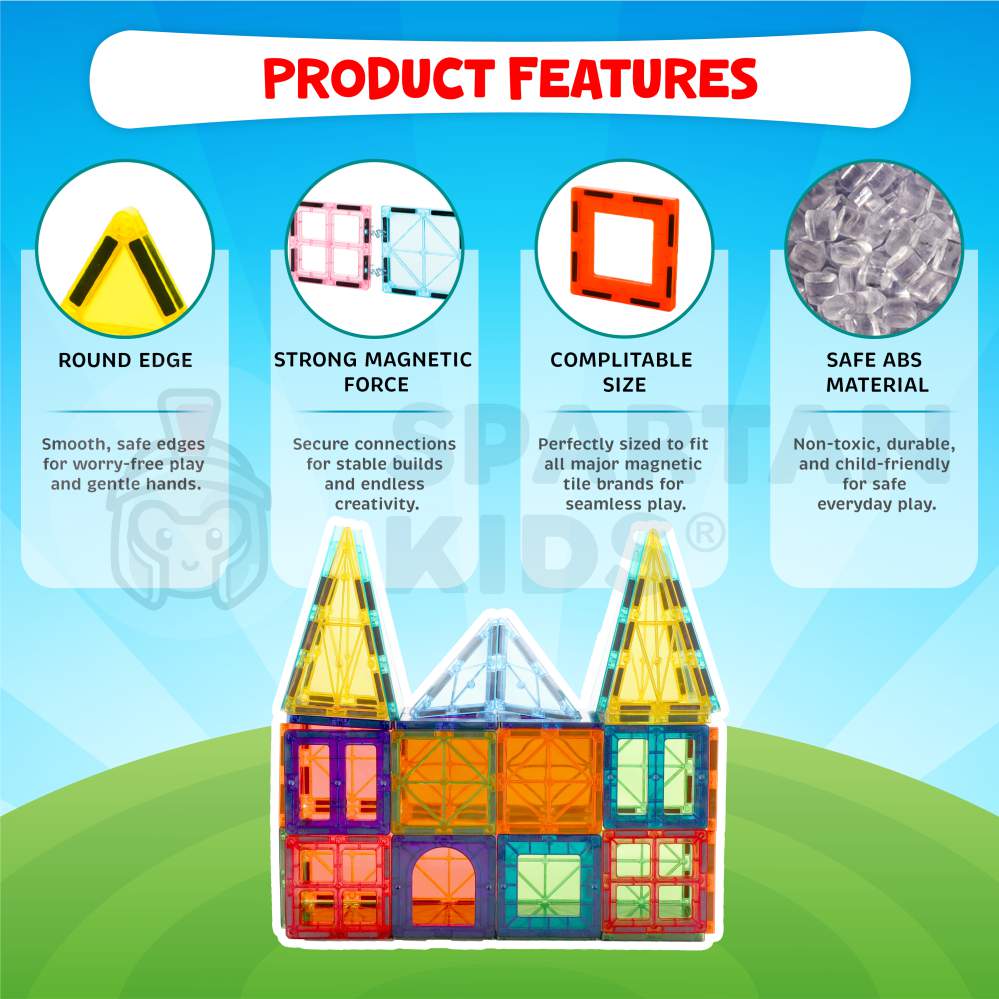 Versatile Compatibility: Seamlessly connects with other magnetic tiles for kids, expanding building possibilities for solo, group, or family play in home or classroom settings.