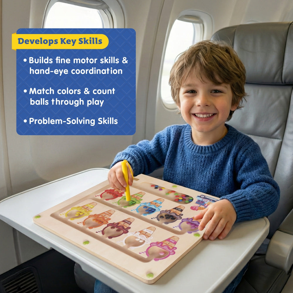 Make learning fun with the Spartan Kids 3-in-1 Ice Cream Magnetic Maze. This wooden educational toy helps children practice color recognition, counting, and fine motor skills through magnetic drag-and-drop play. Designed for preschoolers, it encourages focus, hand-eye coordination, and early problem-solving in a safe, engaging way.