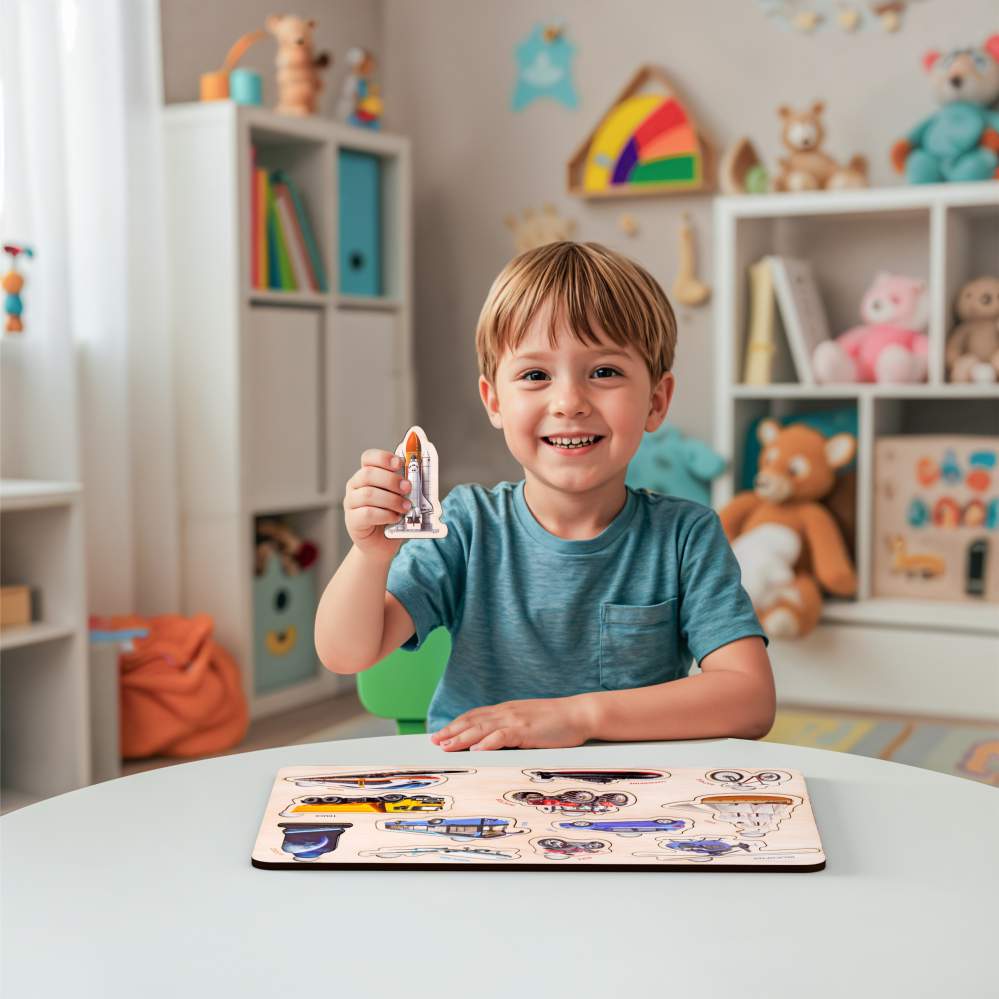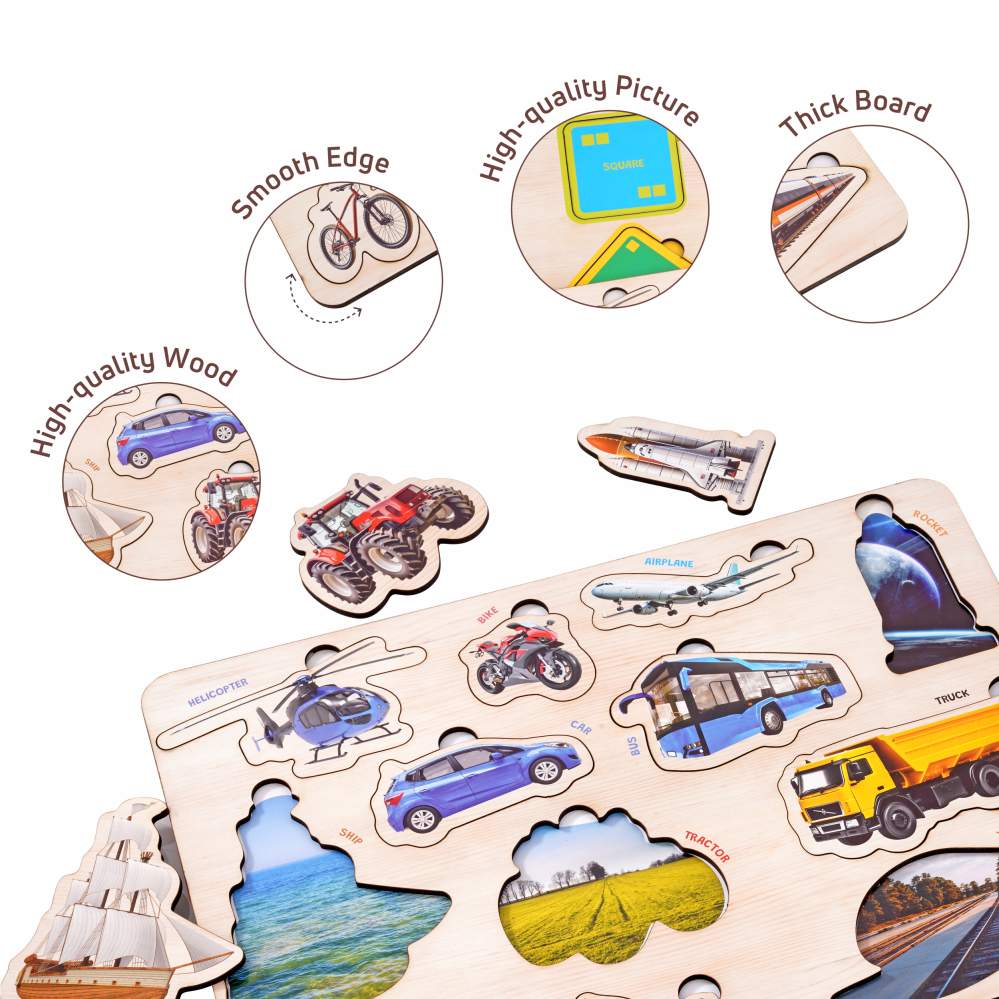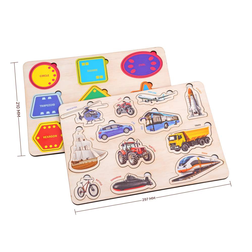 Wooden Shapes & Vehicles 3D Puzzle Set for Kids 2+ (Set of 2)